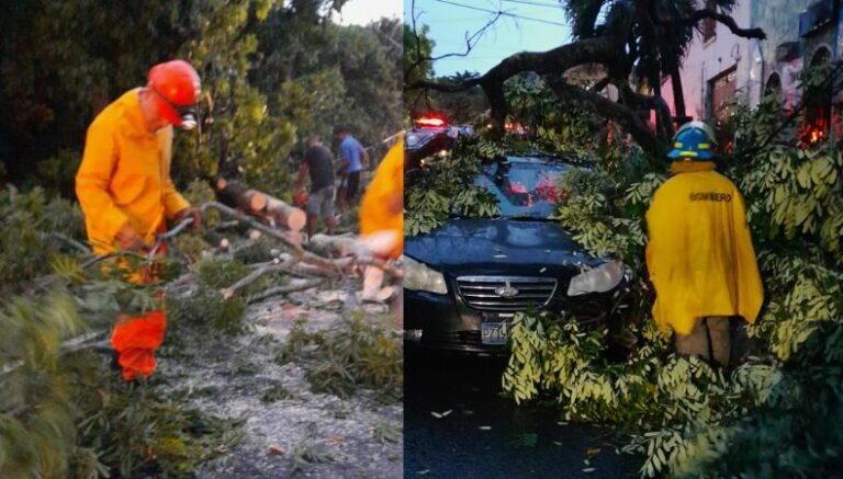 En otro punto, bomberos desaló un árbol caído sobre vehículo en la diagonal David Grandino, departamento de Santa Ana.