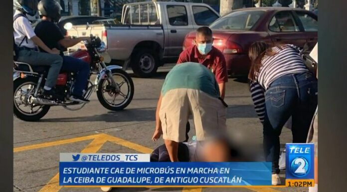 En horas de la mañana, la periodista Lidia Magaña, informó sobre un accidente donde una estudiante cayó de un bus mientras aún se encontraba en marcha. El hecho ocurrió en las cercanías de la Ceiba de Guadalupe, Antiguo Cuscatlán.