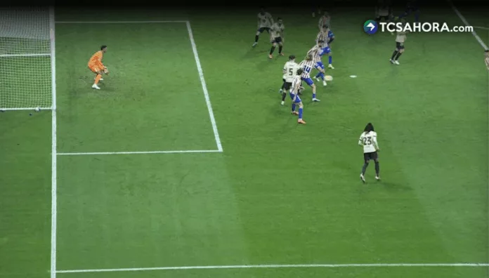 Pues tras un largo rato, incluso con los jugadores calentando sobre el césped a la espera de que en el VAR tiraran las líneas, González Fuertes, acabó anulando el tanto del central de español.