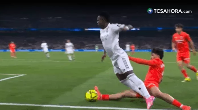 Vinícius al ver la barrida del defensa se deja caer dentro del área, Hernández Maeso no dudó y señaló penal.