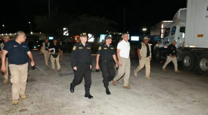 El ministro del Interior de Perú, Vicente Romero, junto al comandante general de la Policía, Jorge Ángulo; y el superintendente nacional de Migración, Armando García, supervisaron el despliegue policial en la frontera con Chile.