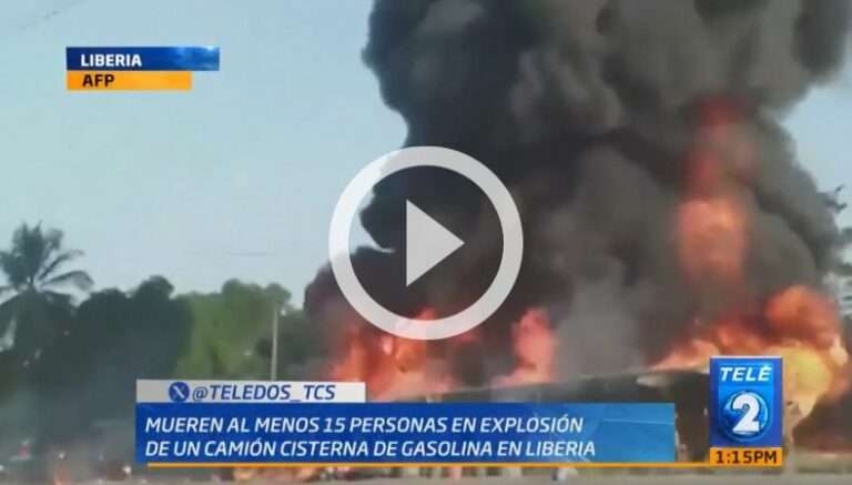 Al menos 15 personas fallecieron y más de 30 resultaron heridas luego de una explosión de un camión cisterna en el centro de Liberia, según informó este miércoles la policía.