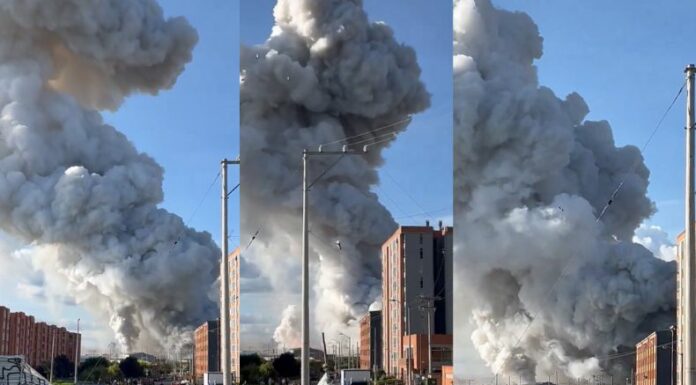 Durante la tarde, en las redes sociales se reportó un fuerte incendio en una fábrica de fuegos artificiales ubicado en el municipio de Soacha, aledaño a Bogotá.