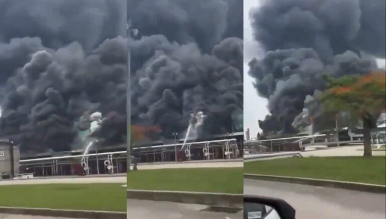 En redes sociales se viralizó el video en el que se visualiza, que sale un fuerte humo de la empresa. Según las primeras versiones, las llamas comenzaron en el procesador de gas del complejo petroquímico de Nuevo Pemex.