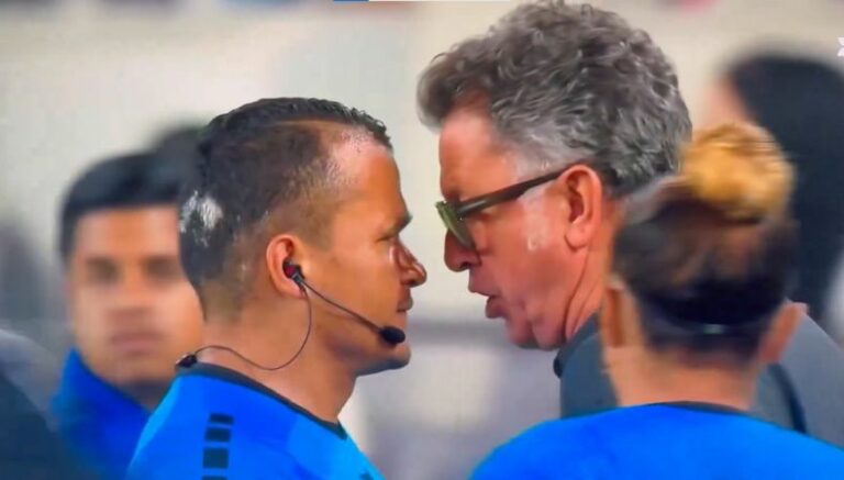 En donde después de dirigirse a uno de los árbitros del encuentro, lo hizo también con David Morán, el juez de línea de El Salvador, contra quien se vio aún más intenso en el disgusto del encuentro.