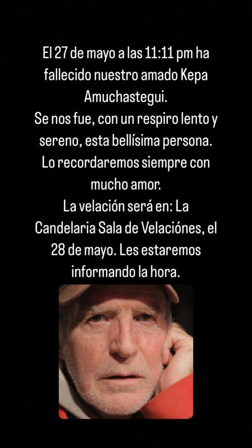 Kepa Amuchástegui Eloizaga actor, director y maestro de las artes escénicas, falleció el 27 de mayo a las 11:11 p. m., a los 84 años. La noticia fue confirmada por su familia a través de un mensaje en sus redes sociales, donde describieron su partida como “serena y llena de paz”.