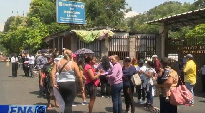 Hoy, un grupo de familiares de personas detenidas bajo el régimen de excepción, acudieron a las afueras de Medicina Legal. Esto, con el fin de pedir un informe que dictamine la causa de muerte de algunas personas bajo custodia del Estado en cárceles, así como la lista de dichos fallecidos.