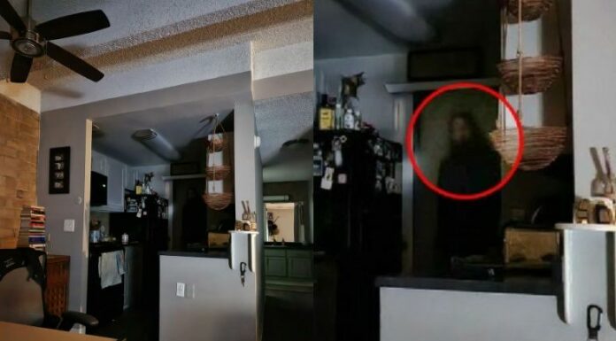 En la primera fotografía, donde la imagen a simple vista, no es tan impactante, pero al realizar zoom los internautas observaron una silueta al fondo de la cocina.