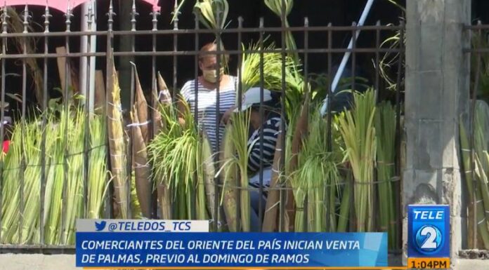 Comerciantes del oriente del país, han llegado a vender las palmas para el Domingo de Ramos a la iglesia El Calvario, en San Salvador.
