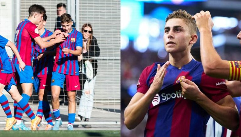 En 2016 ingresó a la cantera culé, donde obtuvo el apodo de «Fermín, el pequeñín» debido a su físico. Factor por el que fue cedido a los Azulillos durante la temporada pasada.
