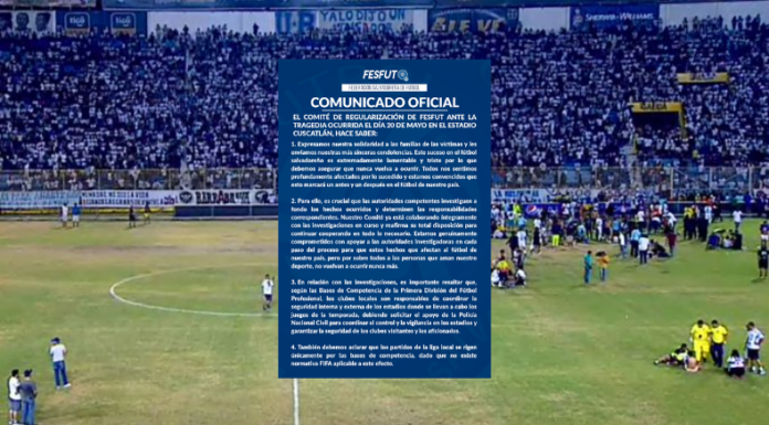 La FESFUT lanzó un comunicado oficial en sus redes sociales sobre lo que sucedió en el Estadio Cuscatlán el pasado sábado 20 de mayo.