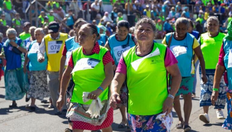 Los adultos mayores fueron los que dieron por inaugurada la actividad con una caminata en los alrededores de la cancha. Todos llegaron a la meta, pero solo algunos lograron ganar una medalla.