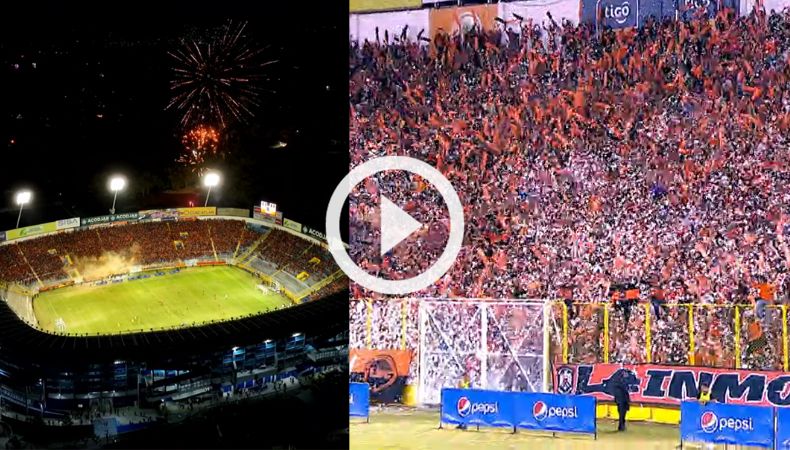 El Estadio Cuscatlán se viste de gala antes de que arranque la final del Apertura 2023. La afición migueleña es mayoría, mientras que los fogoneros son pocos, pero se hacen sentir también.
