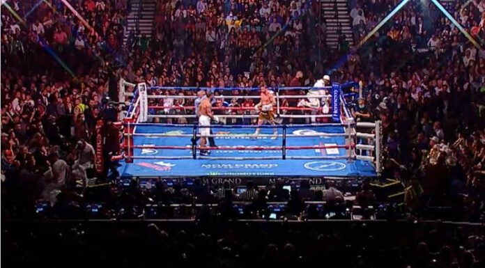 Charlo intenta conecta, pero Canelo está mejor en el combate.
