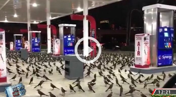 Una persona que se encontraba un día por la tarde, noche en un estacionamiento en Houston, Texas, grabó la dantesca escena al quedar sorprendido por la gran cantidad de aves que se encontraban en el lugar.