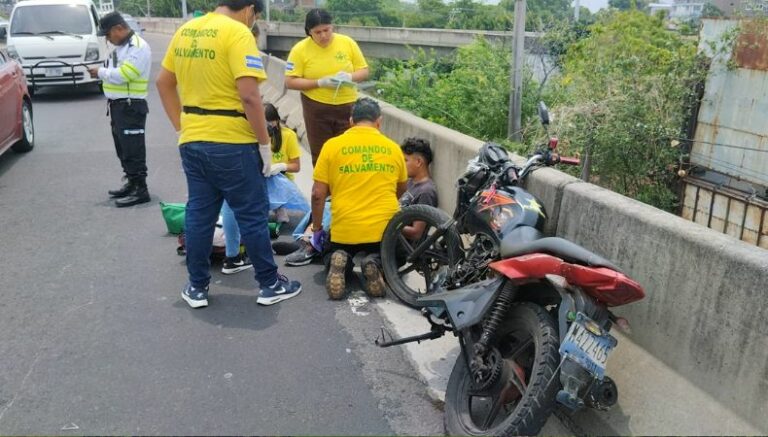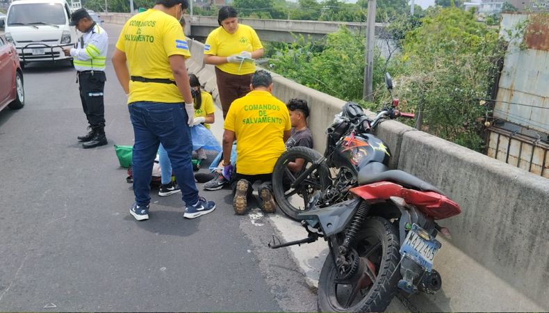 En el paso a desnivel de la 8.ª avenida Sur y el bulevar Venezuela, socorristas de Comandos de Salvamento atendieron a un motociclista de 28 años, identificado como Adonay Coreas; que sufrió lesiones y fue trasladado a un centro asistencial.