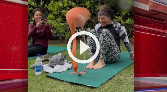 En las redes sociales se ha viralizado un sorprendente momento. En la tranquilidad de una sesión de yoga al aire libre, mientras los alumnos recibían clases, se apareció un impresionante flamenco, quien se convirtió en el mejor instructor de la zona.