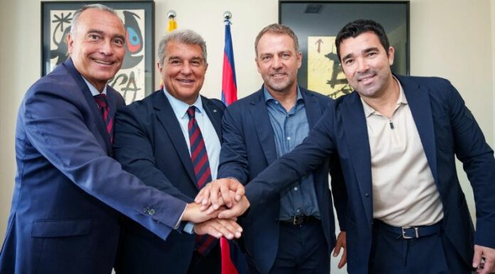 Este miércoles, Hansi Flick se convirtió oficialmente en el reemplazo de Xavi Hernández y brindó sus primeras declaraciones con DT del Barcelona. El alemán y la junta directiva del equipo culé, incluido el presidente, Joan Laporta, firmaron un contrato que une sus caminos hasta el 30 de junio de 2026 durante una reunión celebrada en la ciudad deportiva.