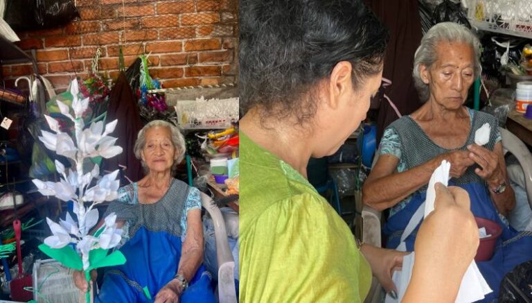 «Orgullosa de ella, porque ella me enseñó todo esto. Pues me siento feliz de ver que todavía ella está en este mundo, trabajando sus flores y pues a pesar de sus años, ella viene siempre aquí a trabajar sus flores», expresó Adriana Pérez.