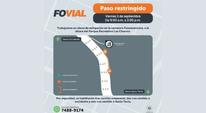 Tal y como se ha informado, a fin de mejorar el tráfico en la zona se habilitarán dos carriles en dirección hacia occidente, y uno para las personas que vienen a Santa Tecla o la capital. El horario que han establecido para realizar estas obras será de 9:00 a. m. hasta las 3:00 p. m.