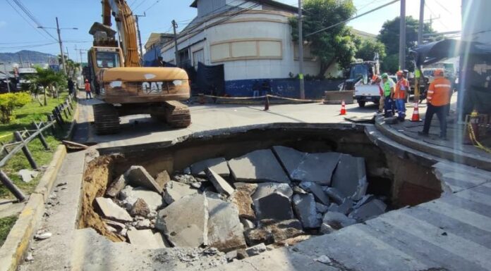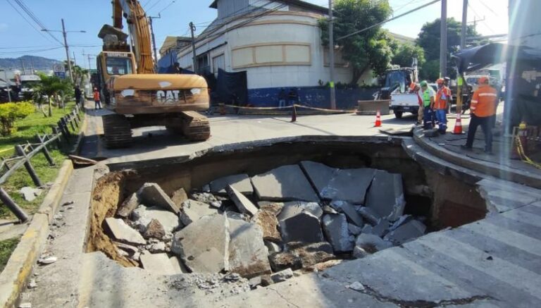 Esta tarde, luego del hundimiento debido al fallo de tuberías de agua potable, a la altura del mercado municipal La Tiendona, los equipos de Fovial y ANDA informaron que ya se encuentran trabajando en la zona para eliminar lo afectado; sin embargo, no establecen un periodo de tiempo para que finalicen las tareas de recuperación vial en el lugar.