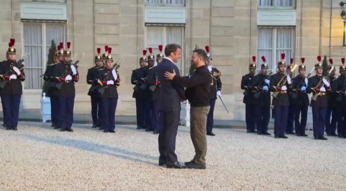 Su anuncio se produjo luego de que Zelenski volara a Francia el domingo, durante la noche, y se uniera a su homólogo francés para una cena en el Palacio del Elíseo.