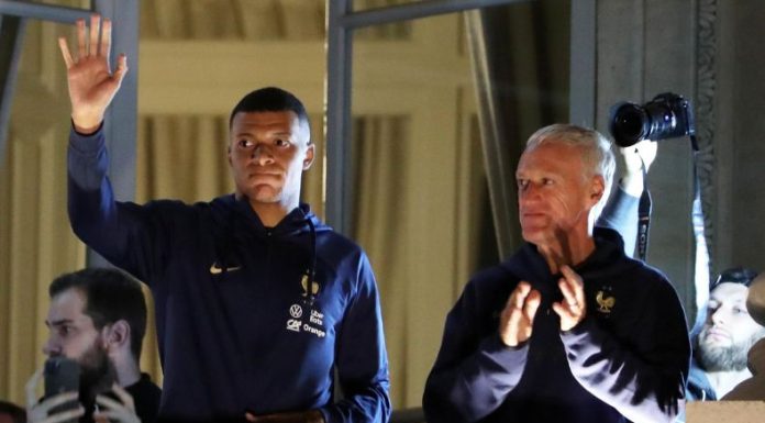 Didier Deschamps y Hugo Lloris fueron los primeros en saludar a la hinchada, desde el balcón de su hospedaje. Posteriormente, se unieron Benjamin Pavard, Axel Disasi y Raphaël Varane. Casi de último entró en escena Kylian Mbappé, uno de los más aclamados junto a Olivier Giroud.