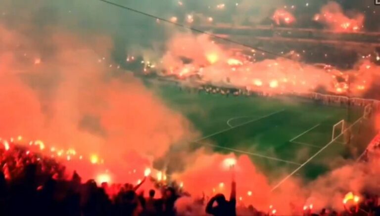 Los aficionados del «Gallo» realizaron una bienvenida maravillosa con cánticos, bengalas y luces. El ambiente en las gradas fue absolutamente increíble.