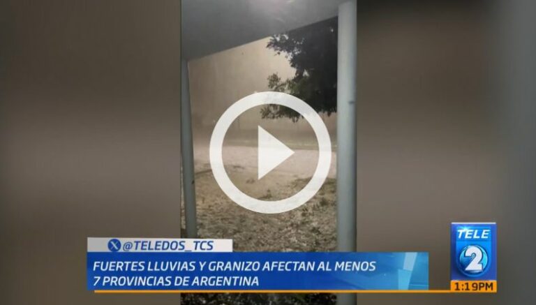 En Argentina, el Servicio Meteorológico Nacional (SMN), emitió una alerta amarilla por fuertes tormentas y caída de granizo que afecta en 11 provincias, en las que se encuentran Entre Ríos, Corrientes, Santa Fe, Córdoba, Santiado del Estero, San Luis, La Rioja, Catamarca, Tucumán, Salta y Jujuy.
