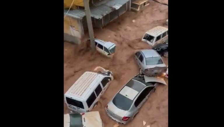 Las imágenes de televisión de Sanliurfa mostraban cómo el agua corría por una calle arrastrando autos a su paso.