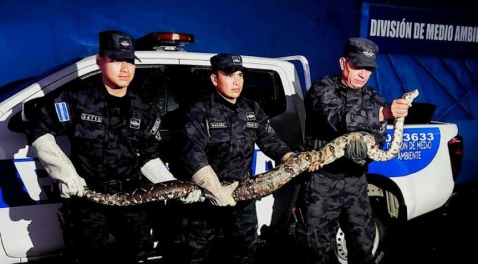En San Salvador fue localizada una boa constructora, que es conocida como mazacuata. Las autoridades informaron que medía alrededor de tres metros y medio de largo. Las autoridades coordinaron su traslado y liberación.