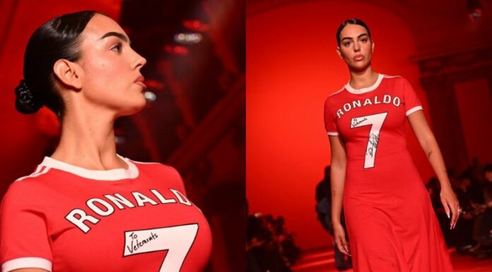 Por lo tanto, reapareció la madre de los hijos de Cristiano, modelando en la anhelada pasarela de la forma más impactante, volviéndose tendencia en las redes sociales. Y, es que la pareja de la estrella del fútbol lució un vestido rojo de inspiración deportiva que destacaba principalmente en la parte de arriba un estampado del número 7 de Cristiano Ronaldo, que incluso llevaba su firma en el medio.