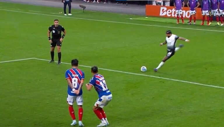 Y es que Memphis consiguió enviar un gran pelotazo que antes de entrar, y por la potencia que llevaba, rebotó violentamente en el poste y se metió al arco de Bahía, que ya iba dos abajo en el partido; y con ello fueron tres a cero finales en la liga del fútbol de Brasil.