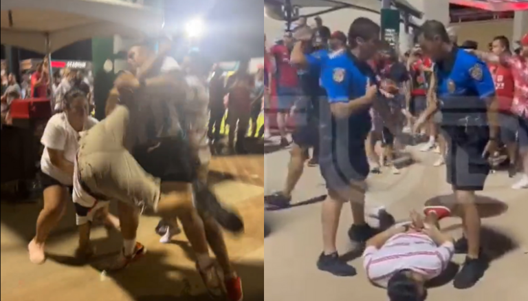 Luego del pitido final, esa euforia se trasladó hasta las gradas, donde cuatro seudoaficionados (tres hombres y una mujer) protagonizaron una pelea brutal en el estadio de Frisco.