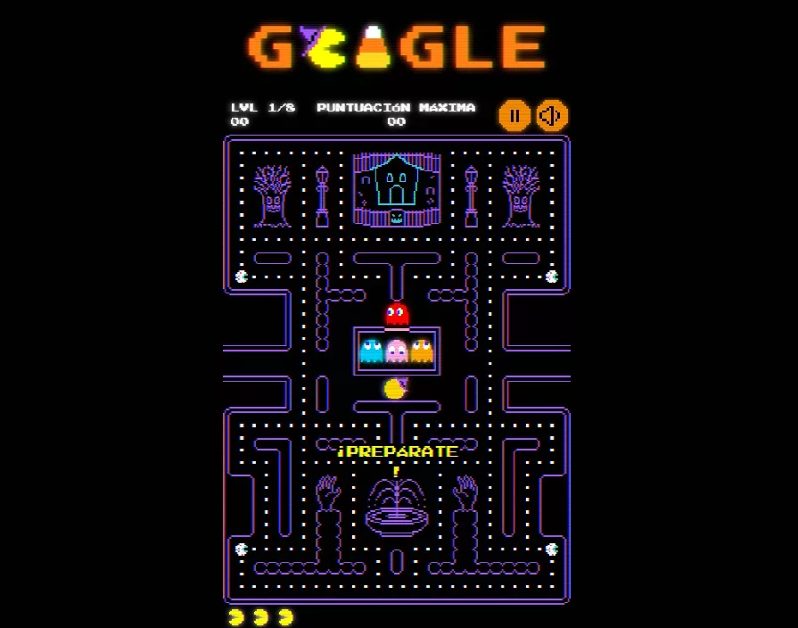 En esta edición especial, la letra “O” del logo de Google se convierte en el botón de inicio de una partida con ocho niveles, cuatro de ellos ambientados en casas embrujadas inspiradas en la personalidad de los fantasmas Blinky, Pinky, Inky y Clyde. El protagonista aparece con un sombrero de bruja y se lanza a su recorrido de “dulce o truco” entre laberintos llenos de color.