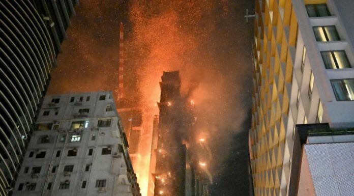 Según reportó un medio local, las llamas comenzaron cerca de las 23:10 p.m., hora local en uno de los andamios de bambú y, rápidamente, extendiéndose alrededor de una hora más tarde a gran parte del rascacielos.