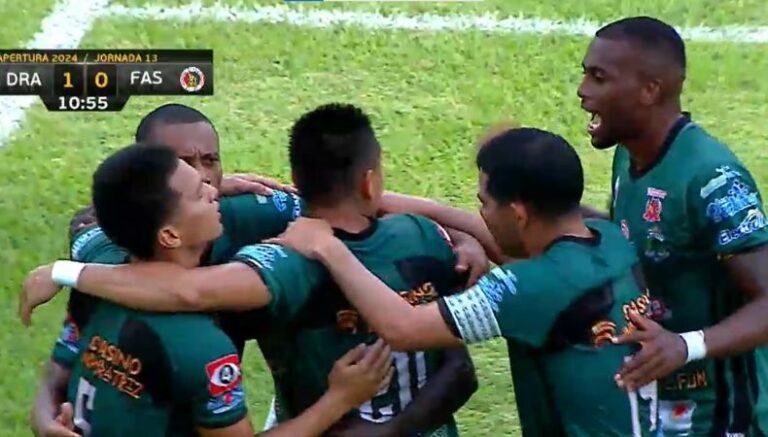 Dragón logró romper el empate inicial de la mejor manera, y es que con un tremendo disparo desde fuera de área sorprendió a lo grande a FAS, que no se esperó dicho tiro de parte de Arboleda.