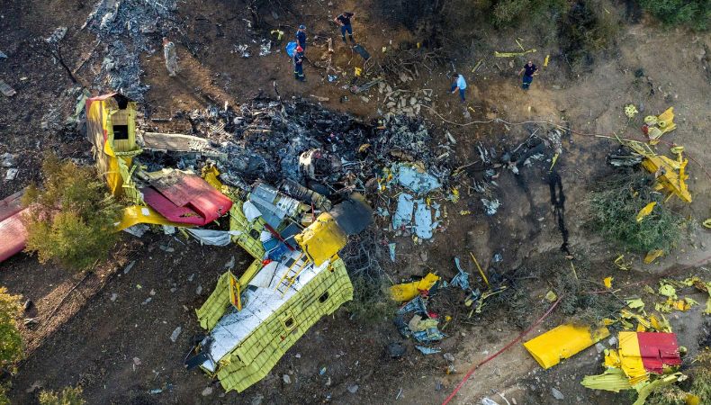 Un avión cisterna Canadair, que participaba en los esfuerzos por controlar y apagar un incendio forestal en la isla de Eubea, en Grecia, se estrelló el día de ayer 25 de julio, en la falda de un monte, cerca de la localidad de Platanistós.