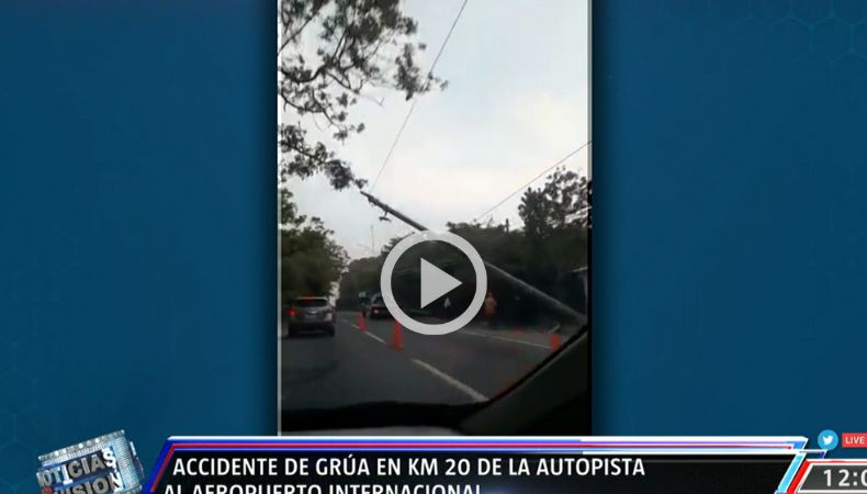 Grúa desploma un poste eléctrico en autopista a Comalapa