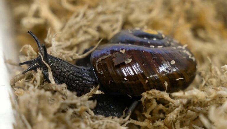 Se trata del caracol del Monte Augustus (Powelliphanta augusta), llamado así porque solo habita en la isla del mismo nombre, ubicada en el sur de Nueva Zelanda. Es una especie carnívora y hermafrodita, reconocida por su peculiar forma de aparearse y reproducirse, que incluye un «poro genital» ubicado justo debajo de la cabeza.