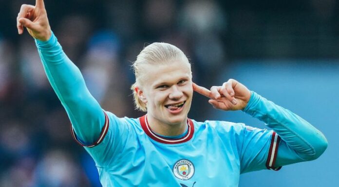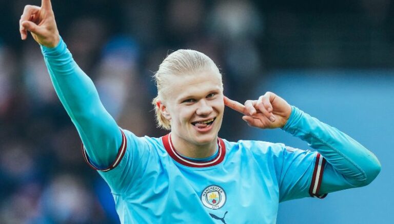 Su hat-trick le llegó al aprovechar un regalo del guardameta rival que cedió el balón a Riyad Mahrez, quien sin pensarlo asistió para Erling al 54´(3-0).