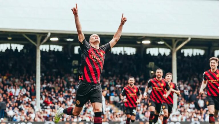 A penas al minuto de juego, Ream derribó a Julián Álvarez y el silbante señaló penal. Con un tiro de zurda, Erling Haaland se encargó hacerlo efectivo al 3′ (1-0). Este se convirtió en su gol número 50 en lo que va de temporada y el 34 en Premier.