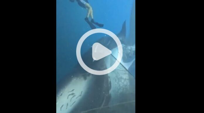 Un enorme tiburón ballena navegaba por el agua cerca de su barco con una gruesa cuerda atada alrededor de su cuerpo, entre su cabeza y sus aletas pectorales. Por lo que, decidieron ayudar para que el mamífero no muriera atrapado en la red.