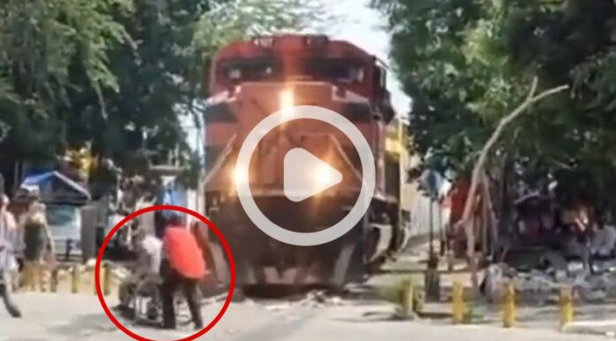 El hecho ocurrió el pasado 13 de agosto y el momento del rescate quedó captado en un video y fue compartido en redes sociales. En el se puede apreciar como antes de que pase el hombre, un auto y una motocicleta cruzan sin problema, a pesar del inminente cruce del ferrocarril de carga.
