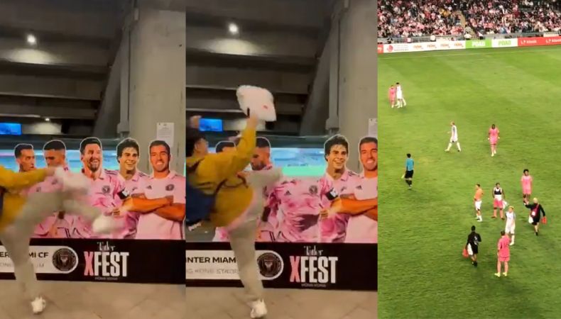 Otro de los clips virales fue el de un fanático que le propinó una patada al cartel que tenían los jugadores del Inter y terminó descabezando a «Leo».
