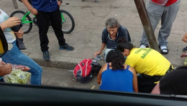 Elementos de Comandos de Salvamentos atendió a un hombre que sufrió una caída de una microbús de la ruta 140 en la avenida Independencia, San Salvador. La persona fue identificada como Tomás Antonio Sigüenza, de 84 años. Según información de los socorristas, sufrió fracturas.