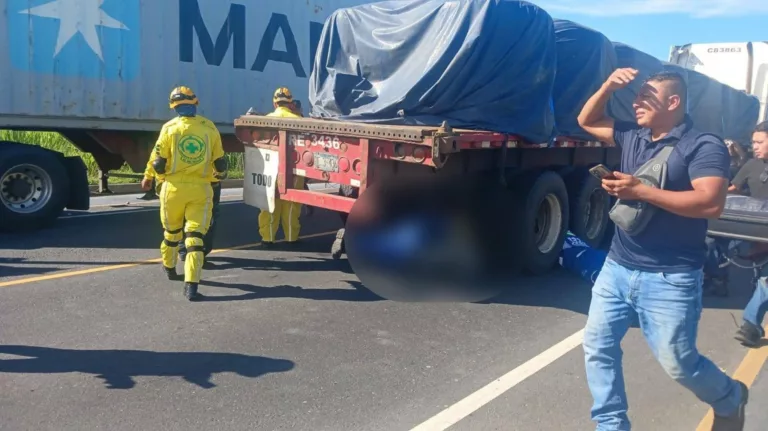 Un hombre falleció esta tarde tras ser atropellado por una rastra en el periférico Claudia Lars, en el sector del cantón Ateos, en el distrito de Sacacoyo, La Libertad Oeste.