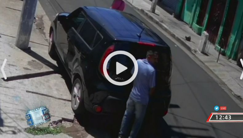 Sin embargo, el metraje capta que, detrás de su acción de acercarse y presuntamente vaciar a la orilla del vehículo, propiedad privada, una acción que también podría estar en el límite de la ley, está la intención de sustraer la antena del auto.