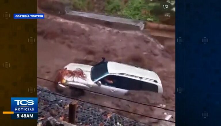 Un poblador de la zona que mira la tragedia porta un paraguas verde en su mano y lo coloca en la primera grada para auxiliar al conductor, sin embargo, la fuerza de la corriente le toma la delantera y arrastra al hombre dentro del vehículo.