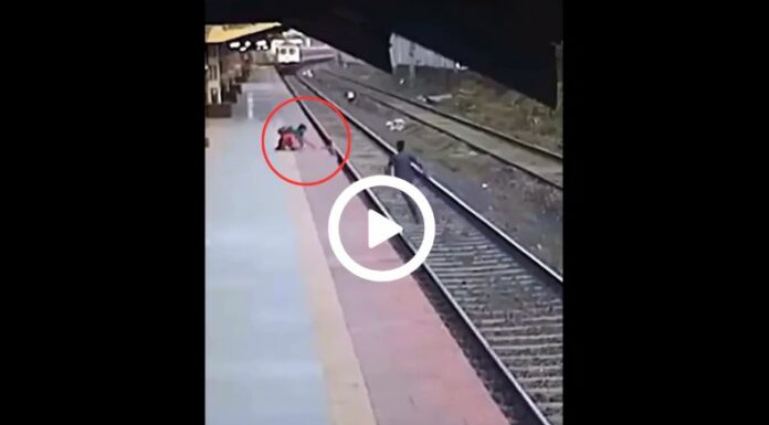 En ese instante, Shelke no titubea y se acerca corriendo desde el otro costado de los rieles. En una acción temeraria pero valiente, llega hasta donde se halla el menor, lo levanta y lo pone a salvo sobre el pasillo de la estación.